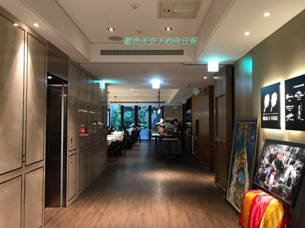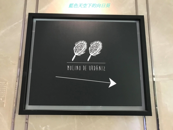 台北【Molino de Urdániz 渥達尼斯磨坊】位於慕舍酒店大廳地下一樓,入口處有餐廳告示牌指示,下方還有一幅紅色奔牛的畫,這幅畫讓人看了會不由自主地想起西班牙,非常有象徵性的一幅畫,倘若我的裙子再長一點,頭上再插朵紅花,也許就能如西班牙舞者般風情萬種的翩然起舞。