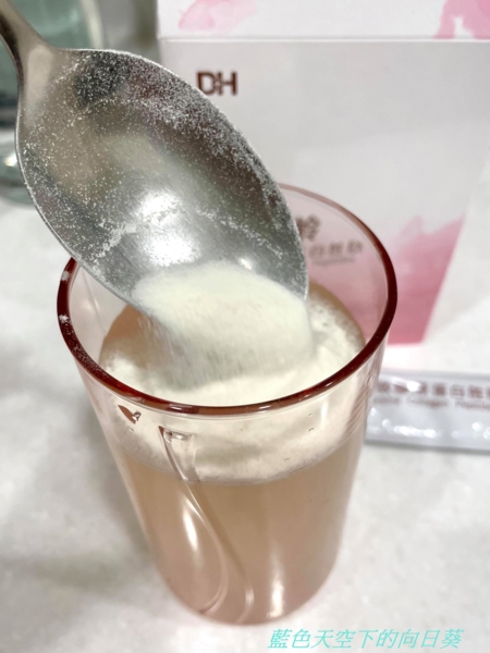 白色粉末聞起來有淡淡奶香味,可搭配果汁、咖啡、優格、奶茶等一起食用。