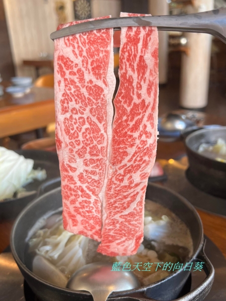 無骨牛小排油花分布均勻,輕輕地在熱鍋中涮幾下後,沾點醬料後放入口,肉質鮮嫩,入口即化。