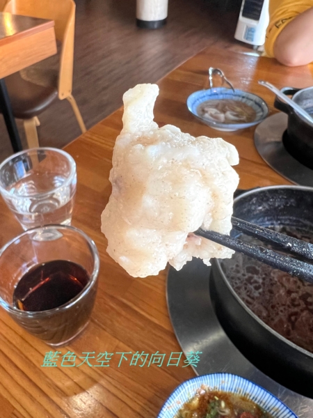 一般火鍋店家提供的花枝漿裡的花枝塊都很少也很小塊,這店老闆真的很佛心,自製這麼好吃的花枝漿,我以後來都一定要點這個花枝漿來吃。