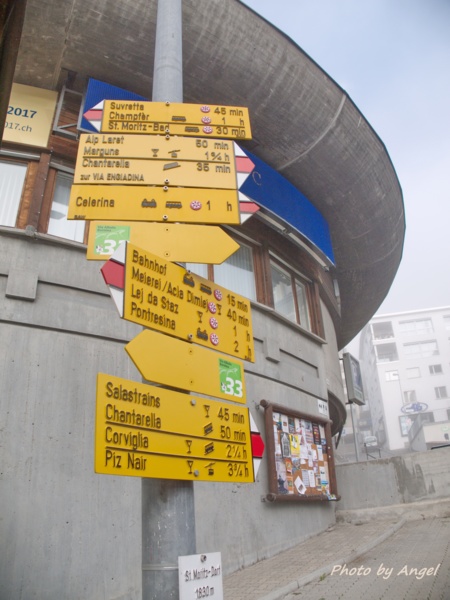 有看到告示牌上寫著 St. Moritz Bad嗎?