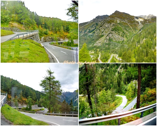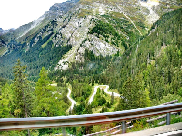 從聖莫里茲搭乘郵政巴士從高山湖區往山下行駛的路途中,