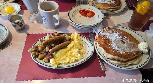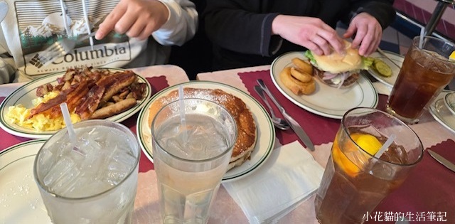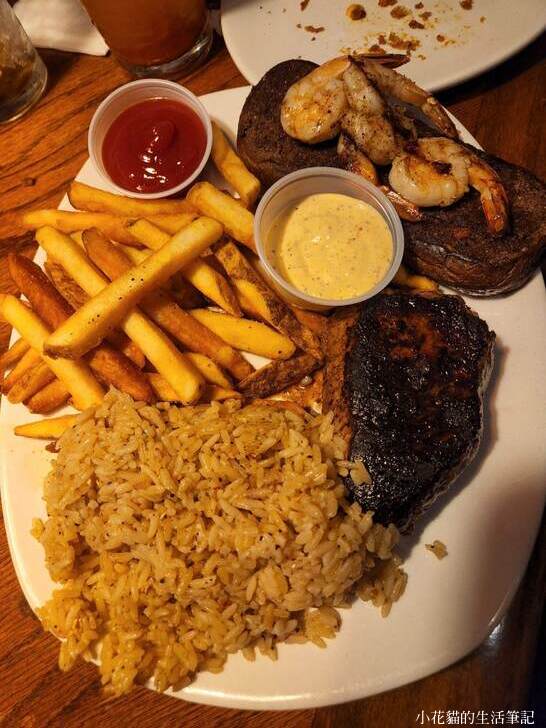 和同事去德州出差時的午餐...我的天啊!!! 德州真的什麼都大!!! 同事的豬排飯, 飯好多!