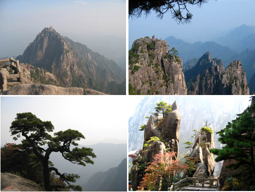 下圖: 順時針方向, 猴子觀海, 蓬萊仙島, 玉屏樓送客松, 蓮花峰遠眺