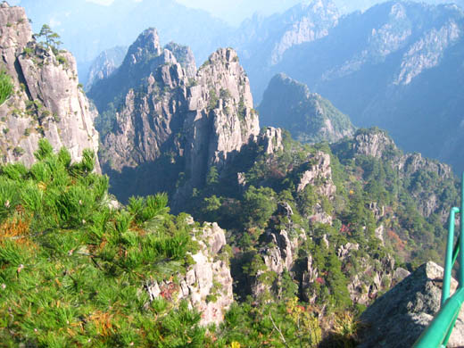 B, 黃山的確是不高, 對您家的瑞士山地人可是如那一盤凉拌玉瓜 「小菜一碟」。不過, 山不在高, Bostonian 爬過則靈, 您的伴絕不失望。那天是早上九點開始登山, 到傍晚五時許抵達北海賓館。因為不高, 所以一天可完成, 也不需要特別的裝備, 只是這樣就沒太多的時間欣賞風景。另外黃山附近還有幾處值得一遊, 這是為什麼我們隔天早上就下山。還有一件事忘了提, 黃山上有轎子可坐, 乾脆讓您的伴充當轎夫一名, 您坐轎子, 那豈不兩全其美, 又顯得情深意濃?