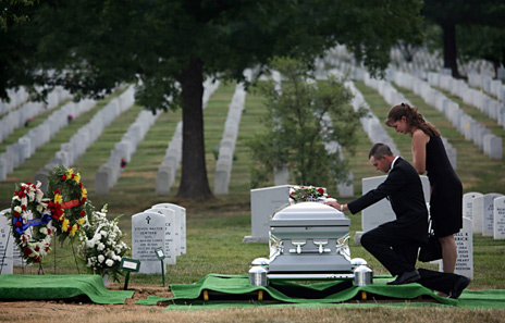 阿靈頓國家墓地規定是憑弔者只能以鮮花追悼死者, 其餘是不被允許的, 雖然如此, 仍然可以見到鮮花以外的東西, 有護唄的親人相片, 有啤酒瓶, 還有母親為死去兒子準備的小熊, 另外, 還有寫在小石頭上的字語, 其中一個寫著可以讓即使堅硬如石的心也為之啜泣: