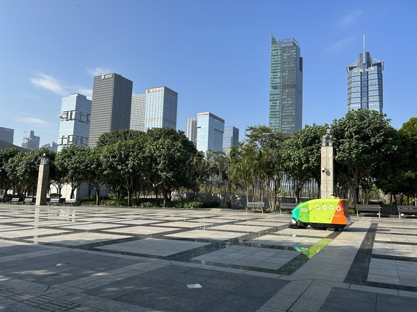 L1是書城還有一些個性小店,書城的樓上全部拉平,依序有廣場,展覽館,廣場一直連到大路邊,有通道與蓮花山相連。整個感覺就是很大,廣場上有多家廠商提供的清潔機器人在廣場上巡回操做。其實與常見的送餐機器人差不多,只是配備掃輪。