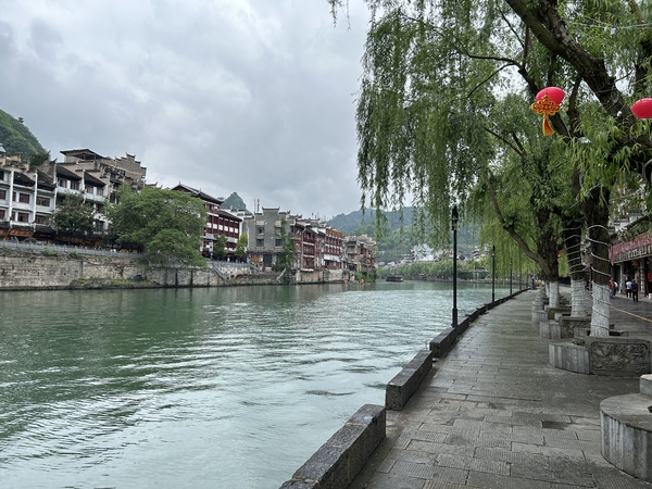 鎮遠古城位於貴州東南,㵲陽河蜿蜒著以“S”形穿城而過,形成一個類似太極圖,故又稱八卦古鎮。鎮遠古城被河一分為二,北岸是舊時士兵駐紮的地方,稱為衛城,南岸是行政單位及商家平民聚集,所以稱為府城。古城的殘留建築就集中在新建的新大橋和標誌性古橋祝聖橋之間。