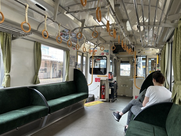 10:26這班車從信濃大町首發,乘客相當多,一路上車的乘客也多,不知道和今天星期六有沒有關係。天氣晴朗,從大町站出發後,清楚的看到北阿爾卑斯山的山峰殘雪。