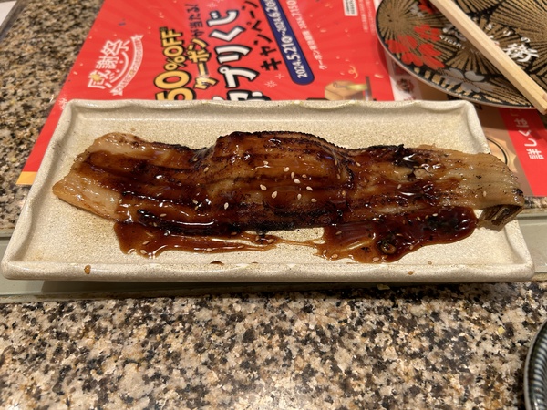 搭車在中部電力MIRAI TOWER電塔下車,是以電波鐵塔的指標建築,走50公尺就有オアシス21,昨天也曾來過,屋頂是玻璃的「水の宇宙船」。再到德兵衛迴轉壽司吃午餐,今天最後點全尾的穴子魚壽司,加上之前點的鮪魚肚,鰤魚等。