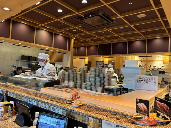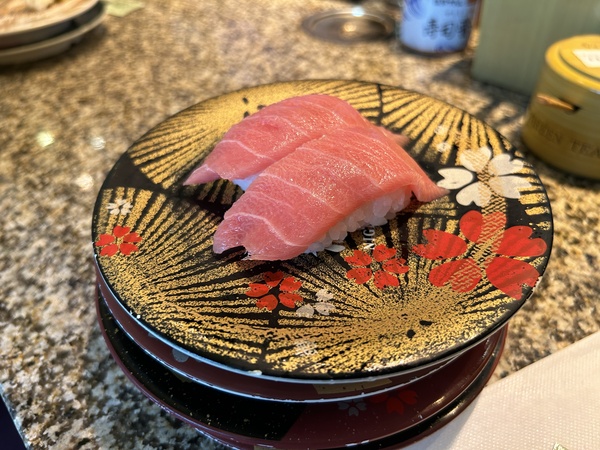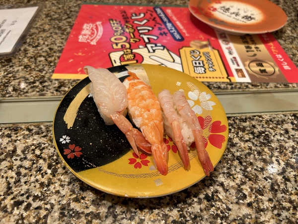 在廣場的“德兵衛迴轉壽司”享用晚餐,在Pad點選,師傅即時製作送來。吃了4059,約台幣850元,平常即使在爭鮮迴轉壽司吃壽司也都要七八百,還沒這麽好的魚。