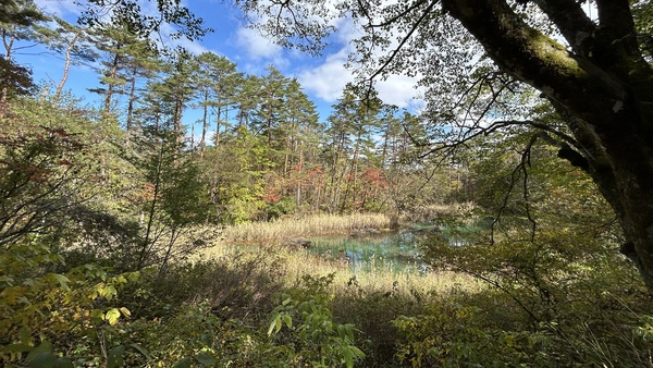渡假村距離五色沼出口約300米,我們就從五色沼的柳沼開始,五色沼的池水顏色依然是變換無窮,但是少了紅葉的陪襯,大約還需要兩週才是最佳觀賞季節。