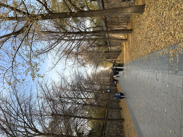 地鐵出口左手邊繼續走就到圓明園的南門,也是綺春園的入口。從南門進去基本上都是花園跟水池,在經過一條長長的銀杏大道才到西洋樓景區。銀杏落葉舖滿地面,仿彿黃色地毯。