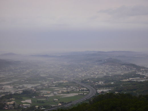 停好車 下來動動脚伸伸腰,往山下遙望山巒起伏雲山霧罩、晨曦破曉高速公路上的車