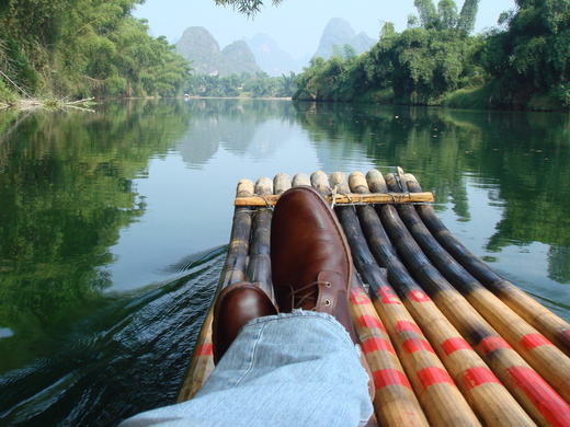 趁著中間一天的空檔,索性放自己半天假,走入恬淡靜逸的大自然,來個竹筏遊河之旅,全程不過近二個小時,但心情很輕鬆,雖然是一個人獨自游河,但後面那位撐筏的小夥子,偶爾也會扮演導遊的角色,說說這條河,談談那座山,倒也有趣!