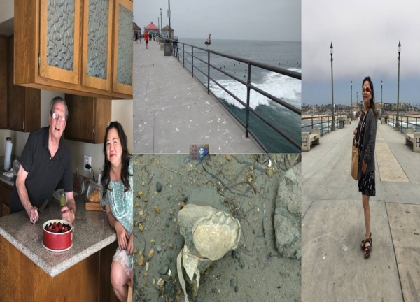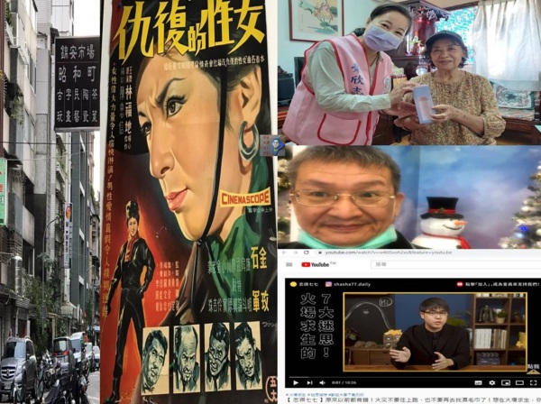 圖片十二:妻子和我的家族拼圖:左邊是妻子和友人拍攝的景點和照片、右邊是我母親和我自拍的照片、下方是女兒的影片截圖