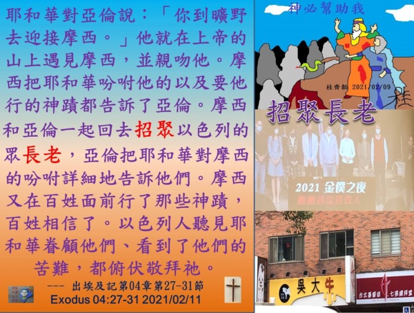 今天新店行道會同翱手扎(2021/02/10)的聖經速讀範圍是民數記 Numbers第09-12章。主題:神呼召摩西