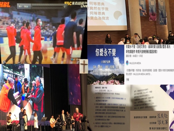 第六張:近期教會觀賞的籃球賽與教會行善、最新主日聖餐、精選聖歌和教會賀卡拼圖