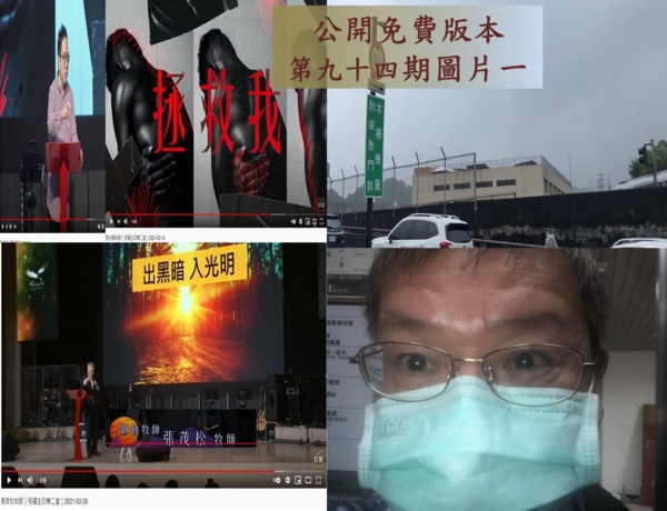 圖片一:左邊是本期兩堂主日訊息、右上是我去PCR的採檢站和四月教會禱告會的自拍
