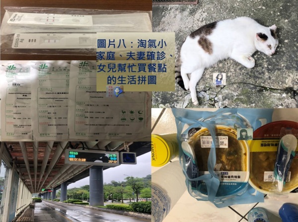 圖片八:左邊是我快篩確診後去PCR並取藥因機車故障只好改搭公車返家、右邊是妻子確診與休息的貓咪示意圖隔離期間女兒幫忙買餐點
