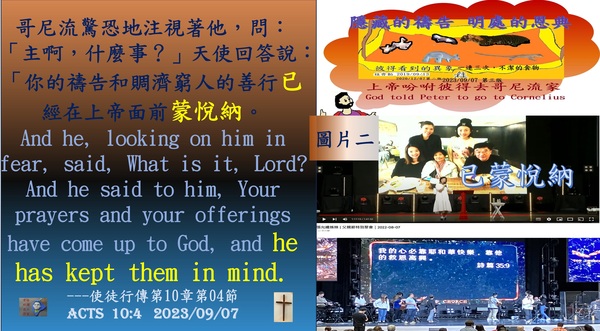 她原本一家人移民到加拿大去,過得還不錯,遇到有人經常傳福音給她,她雖沒馬上接受,但也沒有拒絕,長達了八年的時間來往,直到2005年返台,隔年四月底回加拿大報稅時,去基督徒友人家住,並參加了教會的聚會,接受師母的祝福禱告,問她是否信耶穌,她居然講不相信。但師母不死心,拉她的手持續要她禱告,禱告後她突然眼淚鼻涕直流,隔週她再去聚會,聽到神要打開她屬靈的眼睛,她果然就此看到神在她身上的恩典了,後來她開始接觸看讀聖經,並希望能說服先生也相信,於是禱告讓自己長期手的問題可以得醫治,禱告後也真的應驗,讓她先生也願意來到教會聚會。