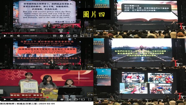 圖片四:去年02/04主日第二堂/張光偉主任牧師與今年07/20美河堂祝福主日第二堂陳耀欽師母兩堂主日訊息拼圖