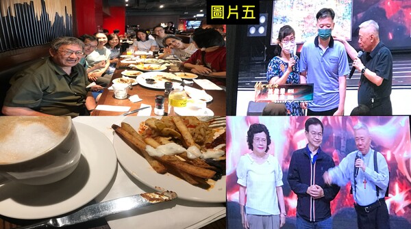 圖片五:本期教會活動拼圖:左邊是七月和教會弟兄姊妹聚餐、右邊是七月禱告會精選照片的拼圖