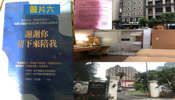 圖片六:本期家庭生活拼圖:妻子姊姊送姊妹傳閱的書、家裡因停水電而夫妻出門外宿的飯店與途中去參觀的景點。