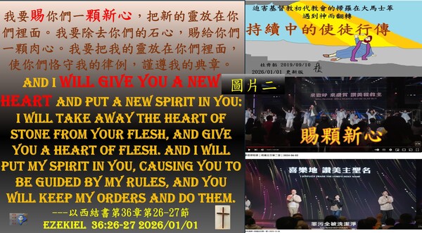 01月01日精選禱讀經文Pray-Reading Verse(s):以西結書第36章第26-27節:[我要賜你們一顆新心,把新的靈放在你們裡面。我要除去你們的石心,賜給你們一顆肉心。我要把我的靈放在你們裡面,使你們恪守我的律例,謹遵我的典章。And I will give you a new heart and put a new spirit in you: I will take away the heart of stone from your flesh, and give you a heart of flesh. And I will put my spirit in you, causing you to be guided by my rules, and you will keep my orders and do them. Ezekiel 36:26-27]