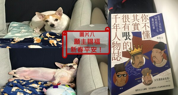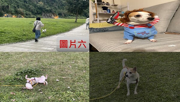 圖片六:本期家庭生活拼圖:與妻子在碧潭遛狗與家人搞怪打扮拍攝愛犬的照片拼圖