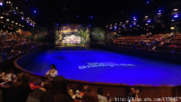 離開加特林堡(Gatlinburg)行程繼續前往田納西州的鴿子谷(Pigeon Forge),去看『迪克西牛仔秀』(Dixie Stampede) - 壯觀的馬匹、野牛和牛仔們的騎馬技巧,加上華麗的舞台、燈光和這個豐盛的四道餐的馬術歌舞表演餐宴,讓大家陶醉在這迷人的夜晚!