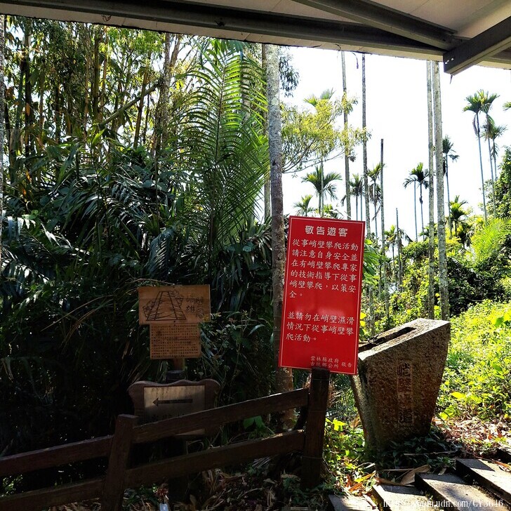 [峭壁雄風]步道就在寺廟旁邊,告示牌很明顯。