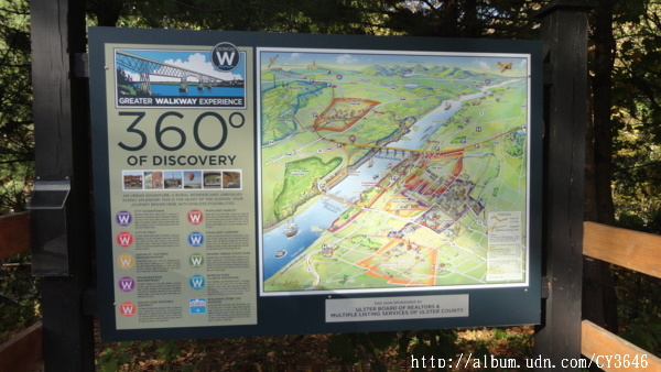 Walkway Over the Hudson 已成為非營利州立公園組織的一部份, 位於 Highland 這一端橋頭看板詳細地介紹了它的歷史,從 19 世紀末開始如何在河上打造一座高架鐵路,到三十五年前因火災而廢棄,而至今日成為一座公園景點。