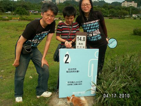 4/17當天風和日麗,很難想像前後兩天都是陰雨天,真心誠意四人全部到齊(我的貞.老公的興.大寶的誠和肚裡小寶的憶)帶著一堆行囊(晚上讀詩會要讀的書及分享的蕃茄),感謝工作人員讓我將一些衣物暫放在櫃檯內,才不致於負重走完全程.幾次來碧潭都是走走吊橋.吃吃東西,散散步就回家,這次安排的路線是我們全家從來沒體驗過的,當然六公里不是我想像的短距離,感謝AVEDA的用心,每一站工作人員的打氣,及安排許多體驗活動讓我們了解到水資源常在不知不覺中浪費,還有選購相關清潔用品也不能大意,大寶說:魚變成女生好可憐喔,我也不想變成女生.
