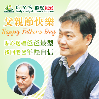 趁著父親節,帶爸爸到【C.Y.S.假髮接髮】專業假髮專賣店親自試戴,讓爸爸重回年輕自信!【C.Y.S.假髮接髮】在父親節老爸們準備了更多帥氣髮型,孝順老爸不能等,父親節相關活動請洽全省16間門市,或撥打免付費服務專線0800-450-450!