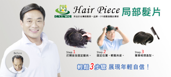 《C.Y.S.HairPiece 局部髮片》因為造型自然受到不少男士的青睞,只要簡單三秒鐘戴上之後就有局部增髮效果,頭髮看起來茂密,還十分自然。想要頂上添髮的男性朋友們歡迎到C.Y.S.全省門市親身試戴!