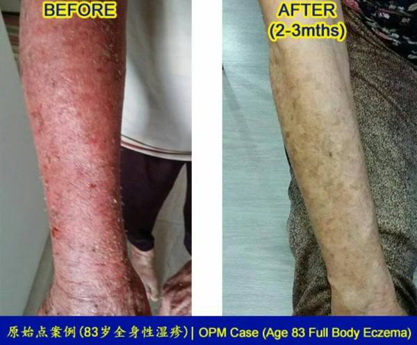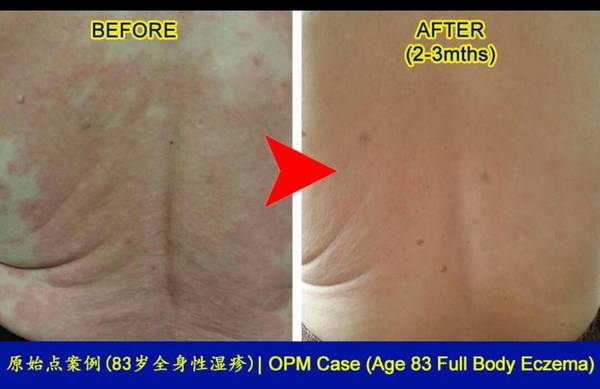 之前看到有個案例, 患者也是得了全身性濕疹,用了西醫的方法處理十年(吃抗生素,和塗類固醇膏)也沒好,是後來用了原始點才得到改善。這個成功的案例讓我及患者對原始點更有信心, 在碰到瓶頸的時候堅持不放棄, 並找到適合患者的方法,終於控制住患者背部、頸部和臉部濕疹的惡化。但後來聽說之前那個濕疹患者, 因為不得不回去上班(他已一年沒能上班),以及休息不夠,沒時間按推與溫敷,導致他的濕疹再次復發。這給了我一些警惕:原始點是一套完整的、健康生活觀念,那一點如果處理的不好,任何疾病都會找上你,所以當用原始點調理的前期效果出來後,後期的護理還是非常重要的。