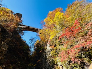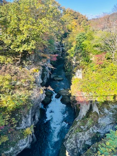 根據AI的評比,鳴子溫泉區的鳴子峽是東北賞楓的首選之一。我們因此在那裏訂了兩晚的旅館,希望飽覽東北的秋色。
