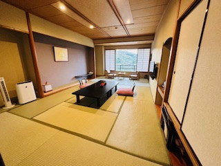 等開了房門,發現客房竟是一間有十八席榻榻米大的和室,面眺山景,又是一番驚喜