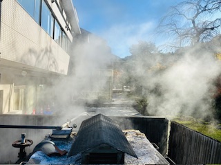 這日因是假日,預定旅館的接駁車停駛,我們只好求助於AI。然後依AI的建議,走到仙台驛西口的青葉通63號公車站,搭乘前往秋保溫泉的巴士,在蘭亭站下車。果然一下車,就看到我們當晚要住的蘭亭溫泉旅館。