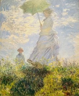 1875年,莫內畫下〈打著洋傘的女人〉,描繪愛妻卡蜜兒和兒子讓(Jean)在夏日和風中漫步田野的情景,後來成為印象派的經典名作。