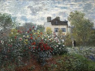 他的〈阿讓特伊的花園〉其實與畢沙羅的〈伊拉格尼的花園〉構圖相近,但莫內使用更印象派的畫法,讓畫面的意境更朦朧,色彩更繽紛,也因此更具飄渺與鮮麗的效果。