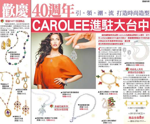 紐約國際級時尚品牌CAROLEE為慶祝品牌創立四十週年慶,確定於今年12/22正式進駐台中大遠百百貨,開幕期間將推出今年秋冬設計新品以及多款經典明星商品,滿足您對於時尚首飾的所有渴望!
