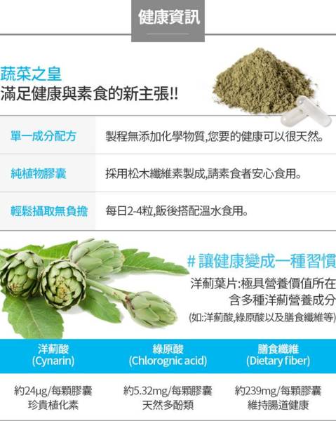 來自台灣南投所產的蔬菜之皇—洋薊,富含: