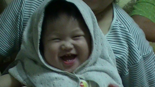 前幾天早上,幼梨啊還在房裡睡覺,我在客廳邊吃早餐邊和媽聊天,後來好像聽到有小孩在爬行的聲音。心想不會吧,趕緊跳起來查看,果然看到他從房間爬出來。