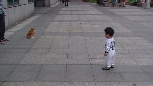 前幾天帶幼梨啊去銀行辦事,他居然趁我不注意的時候,偷偷溜入辦公區,結果一些銀行阿姨和叔叔就來逗他玩。後來其中一個阿姨問我,他都不怕生嗎?我回答基本上他是眾人好,誰都可以跟他玩,他只怕有刺青的人。有一次我去買水果,水果行的叔叔腿上有刺青(剛好是他的視線高度),結果那個叔叔一開口他就馬上放聲大哭,害我很尷尬。銀行的叔叔聽完下了一個結論說:原來你是欺善怕惡啊!