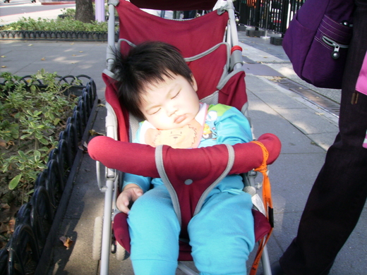 於是我們又繼續 跑 追 拍。才下午1點多,我就棄械投降了,對老公說我們回家好了。奇怪,明明就什麼都沒逛到,怎麼會這麼累啊???!!!就在我們決定回家後,幼梨啊就睡著了。哎~~~認命吧!把他扛回家吧!