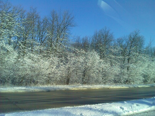 別以為這只是路邊的小樹,其實路旁的樹後一整片都是森林保護區。樹葉都掉光了,樹枝白白的,非常明亮好看,好像純白色的珊瑚一樣。如果走進這片森林裡,周圍都是白色的樹,不知道是什麼感覺。