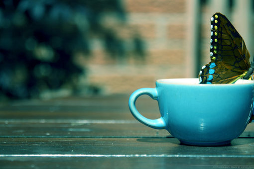 這蝴蝶停在咖啡杯上 很有 fu~~