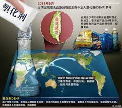 新北市一家昱伸香料公司違法使用「塑化劑」(DEHP)製造起雲劑,結果造成至少一八六個廠商受到牽連;百萬罐運動飲料下架、四萬兩千公斤的果汁果醬濃縮粉回收,包括老字號且受消費者信賴的品牌如味全、黑松、金車、悅氏、順天堂、長庚生技、杏輝藥品、永信、盛香珍果凍等都受到影響。這個事件的後續的效應仍不斷擴大中;不但台灣食品界已一片風聲鶴唳,就連前陣子興奮引進台灣珍珠奶茶的英國商人都得擔心是不是把含有塑化劑原料的飲品賣給了客人。